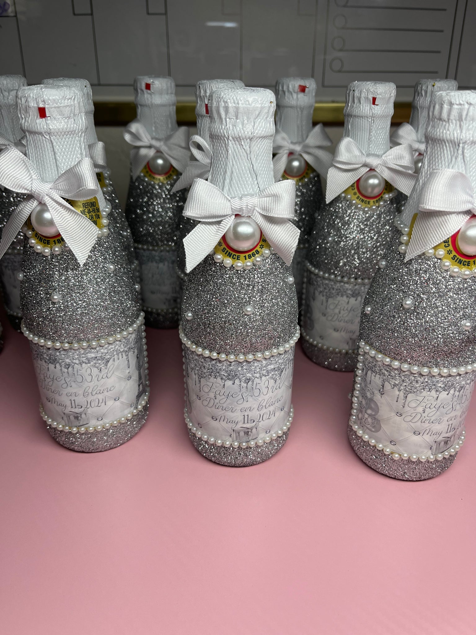 - Add 12 custom sparkling cider bottles w/ glitter for $65